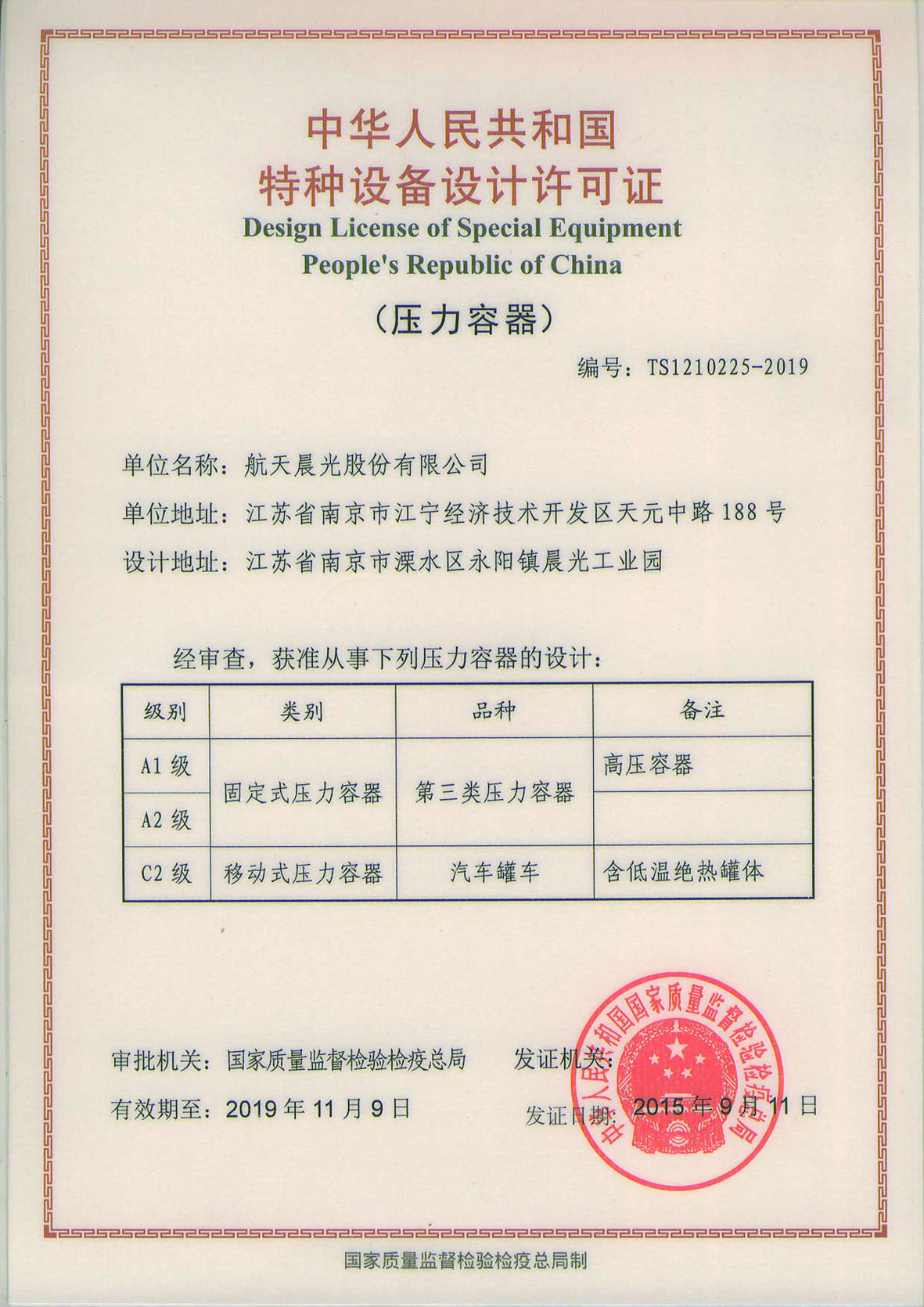 壓力容器特種設(shè)備設(shè)計許可證