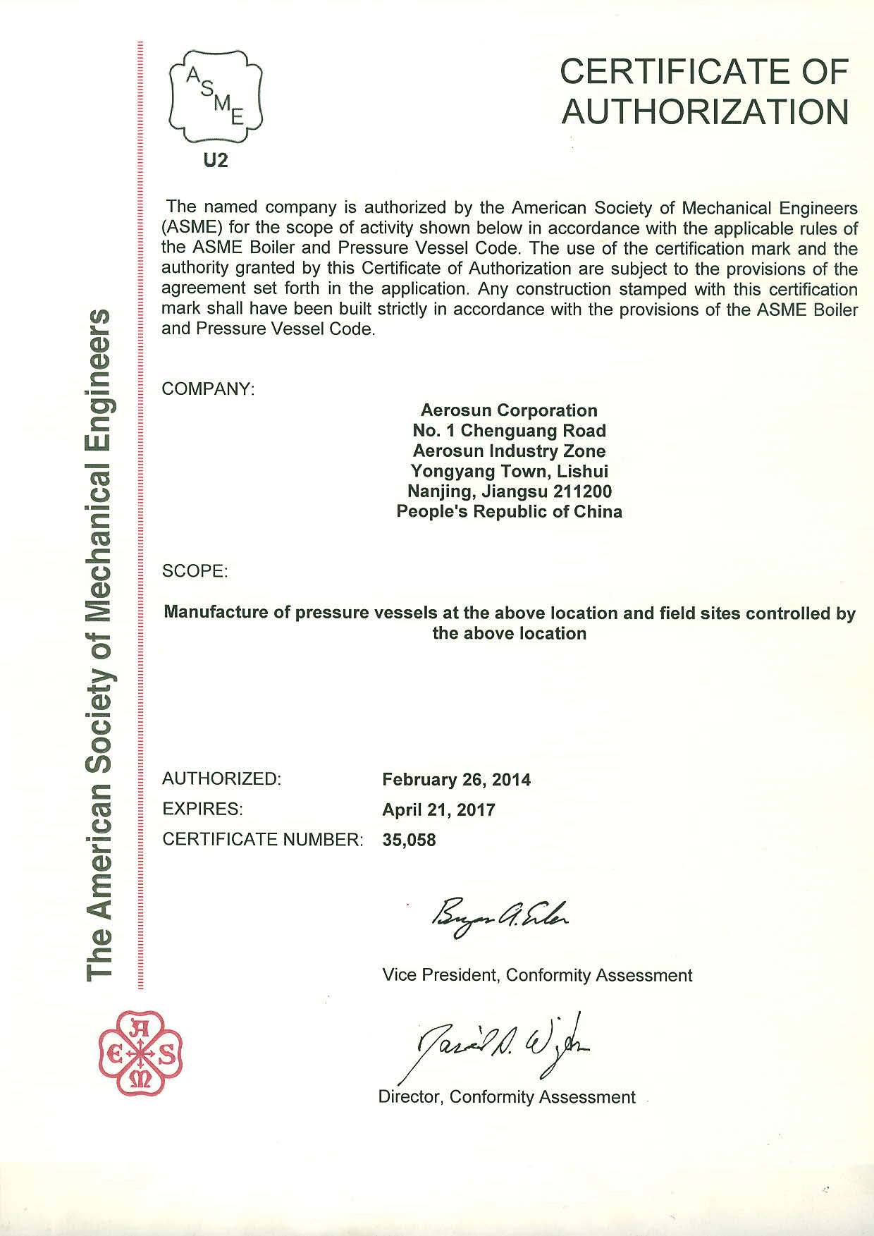 ASME U2證書