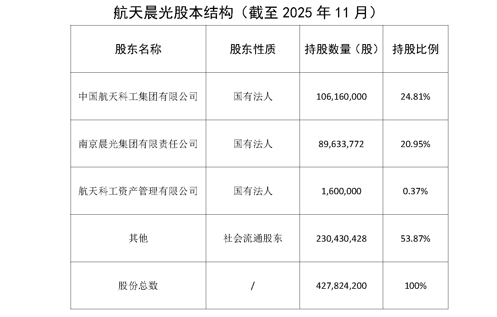 航天晨光股份有限公司  >  投資者關系  >  公司治理  >  股本結構